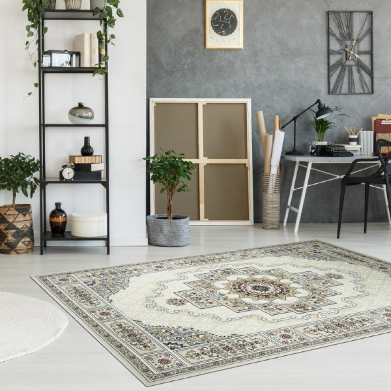 Thảm có kiểu dáng hiện đại và hoa văn cổ điển độc đáo giúp mang lại sự sang trọng cho ngôi nhà. Các đường hoa văn xử lý rất cẩn thận, tinh xảo gây đốn tim người nhìn.